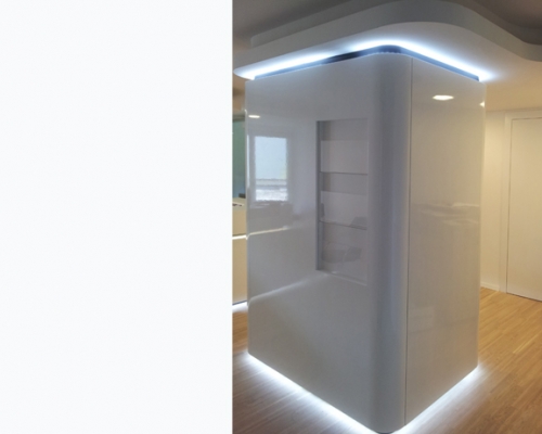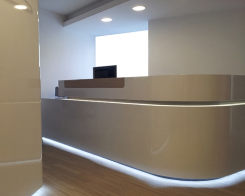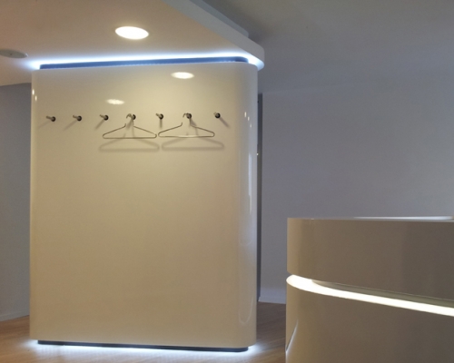 die beengte räumliche situation machte die aufgabe besonders spannend. ein großzügiges erscheinungsbild des entres war wesentliches ziel des entwurfskonzeptes.