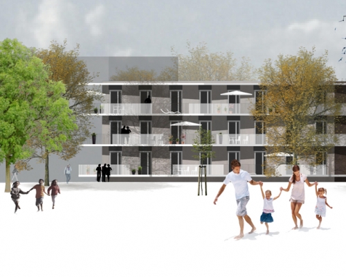 wettbewerbsprojekt für das wohnareal im osten des kumitzberges bei villach. kompakte Baukörper und fließende balkonlinien bestimmen die fassadenlandschaft und bieten spannende durchblicke.. kooperation mit arch. Toralf fercher