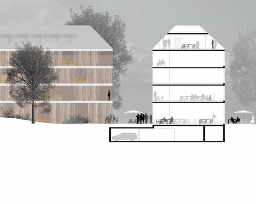 die wettbewerbsarbeit aus dem jahr 2022 passt sich der bestehenden blockbebauung an und bietet neben nahversorgern und lokalinfrastruktur stadtdnahes wohnen in höchster qualität.
